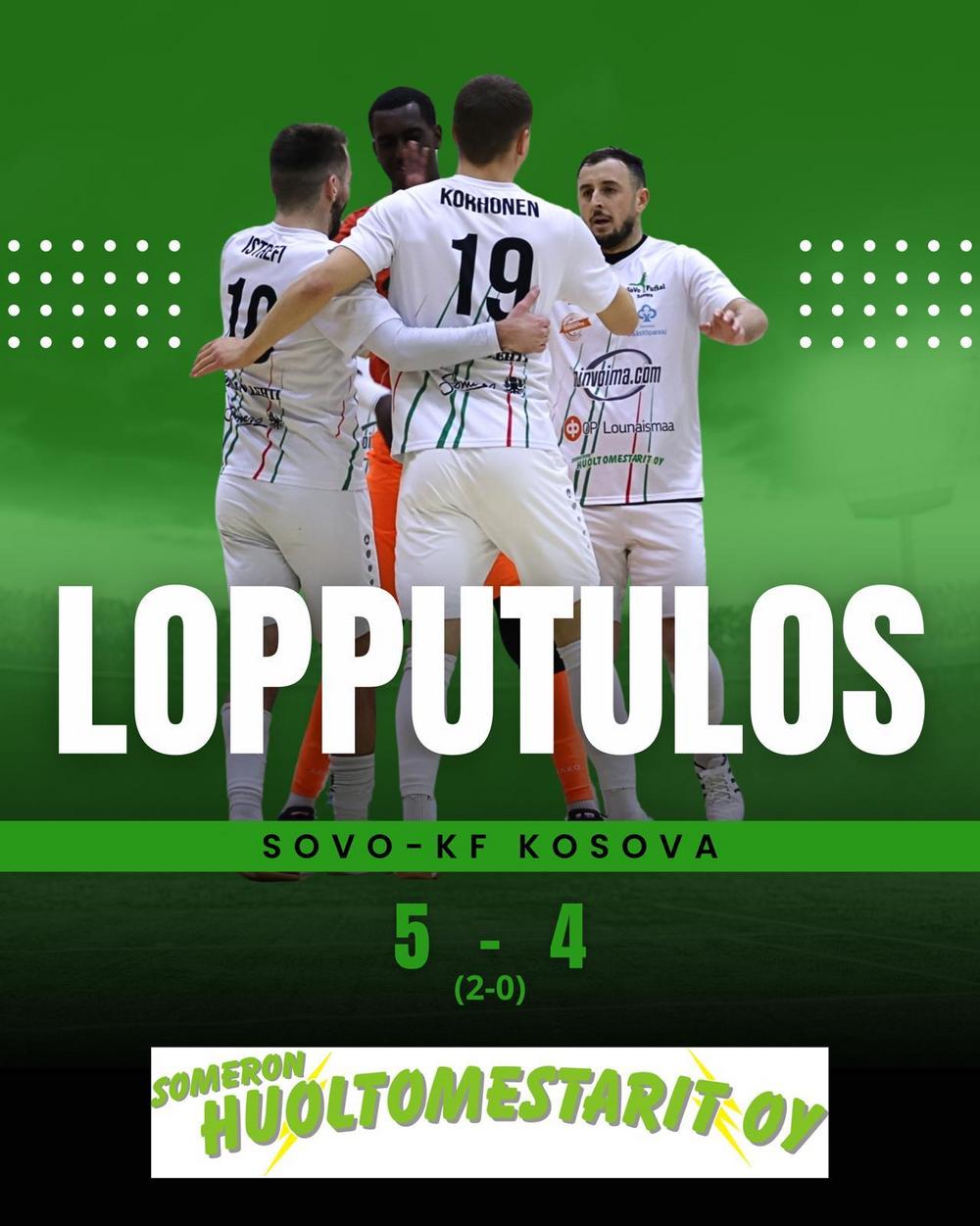 SoVo - KF Kosova 5-4 (2-0) SoVo Futsalin ja KF Kosovan historian ensimmäinen kohtaaminen liigatasolla oli odotetun mukainen jännitysnäytelmä. Täyteen ahdattu Someron monitoimitalossa oli tunnelma…
