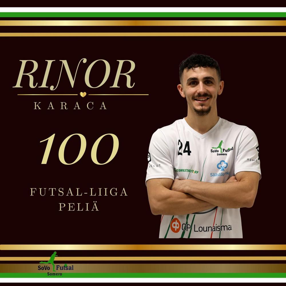 Rinor Karaca on saanut täyteen 100 Futsal-liiga ottelua. Viime sunnuntain EBK ottelu oli 102 peli ja niissä Rinor on saavuttanut 58+38=96 tehopistettä. Lähes pisteen per/peli tahdilla hän on SoVon ja…