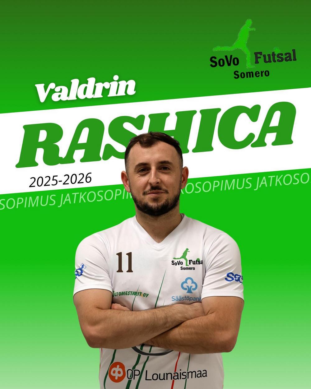 Valdrin Rashica 30v on tehnyt jatkosopimuksen SoVo Futsalin kanssa kaudelle 2025-2026. Rashica pelasi viime kaudella ensimmäisen täyden liigakauden ja viimeisteli heti komeat 29 maalia 24 ottelussa.…