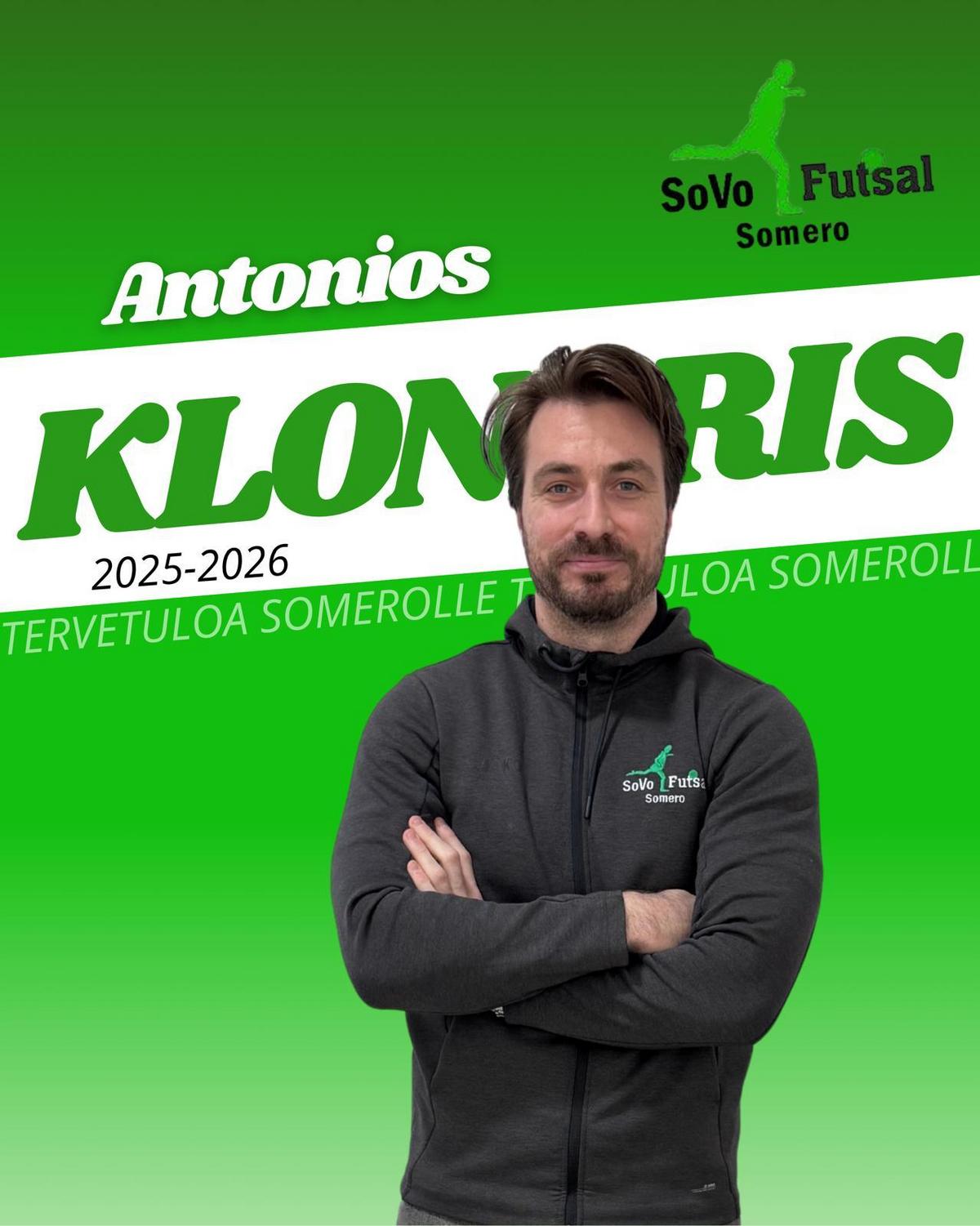 Antonios Klonaris 33v on tehnyt loppukautta koskevan sopimuksen SoVo Futsalin kanssa. Klonaris tulee täydentämään joukkueen maalivahtiosastoa. Hän pelasi alkukauden EBK Fs:n riveissä 8 ottelua ja oli 4 ottelussa avauskokoonpanossa. Klonariksella on kokemusta Futsal-liigasta GFT:n riveistä kahdelta edelliseltä kaudelta ja ennen sitä yksi kausi ykköstä Hifk Fs:n riveistä. Klonaris ei ole vielä mukana Ylivieskassa lauantaina, mutta pelaa farmiseura GFT:n riveissä sunnuntaina.