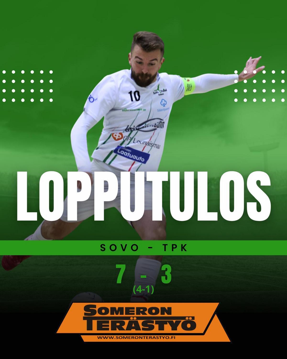 Toinen jakso jatkui SoVon tehokkaalla myllytyksellä, kun ensin Korhosen upea syöttö tavoitti maalin edestä Istrefin ja hattutemppu täyteen Arbelle. Mister SoVolla oli vasta kuudes ottelu tällä kaudella ja tuloksena kolmas hattutemppu. Istrefillä on nyt kasassa kolmetoista liigamaalia, mikä on mykistävä teholukema loukkaantumisista kärsineeltä Arbelta. Nikita Hyppösen upea läpiajo suoritus pisti taululle jo 6-1 numerot ja game over alkoi vilkkua jo runsaslukuisen kotiyleisön silmissä. TPK oli kuitenkin sinnikäs ja nappasi kovalla asenteella pelin haltuunsa hetkeksi. Pääsi jopa jo "iholle" kahdella kavennusmaalilla. Ensin Veeti Savikko runnoi maalin edestä 6-2 ja jälleen SoVo puolustuksen uinahduksesta vapaapotkussa Valtteri Kaarna viimeisteli 6-3. Pelin viimeiset viisi minuuttia oli vauhdikasta menoa päästä päähän, mutta maalinteossa onnistui ainoastaan SoVo. Miesten Futsal-liiga sekä SoVo debyytinsä tehnyt Aleksi Martikainen iski loppunumerot 7-3. GFT:n P19 joukkueen kapteeni näytti heti potentiaaliaan miesten liigan puolella ja on valmis taistelemaan minuuteista SoVon kovassa hyökkäysarsenaalissa.